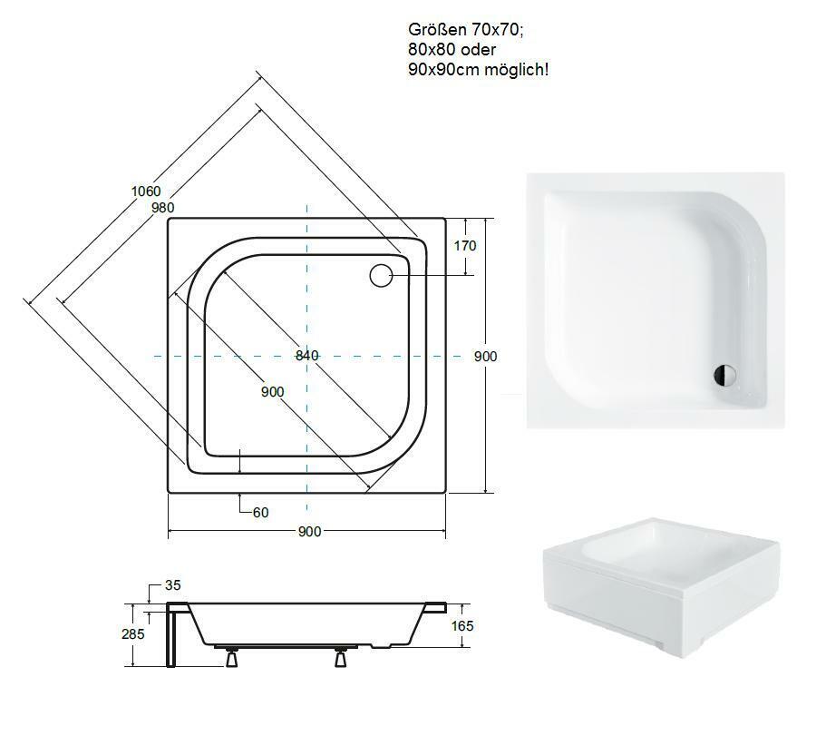 D'**Dusch Duschwanne Acrylbad Brausewanne Flach Oflossgarnitur Oflaaf** kombinéiert Qualitéit an ästhetescht Design fir Äert Buedzëmmer op en neien Niveau ze bréngen. Virgesi mat engem robusten an haltbaren **Acrylmaterial**, ass dës Duschwanne besonnesch resistent géint Kratzer an d'Verschleiung vum alldeeglechen Gebrauch. Mat verschiddene Gréissten zur Auswiel, bitt se maximal Flexibilitéit fir verschidde Raumspesifikatioune; Dir kënnt tëscht **70 cm, 80 cm oder 90 cm** Längt wielen, all mat enger standardiséierter Héicht vun **16,5 cm**. D'Faarf ass wéi ofgebilt, wat et erlaabt, datt se einfach a verschidde Buedzëmmersdesigns integréiert ka ginn.