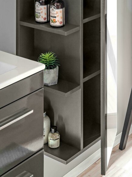 Dëst Buedzëmmer Set ass perfekt fir kleng wéi och grouss Raimlechkeeten, well déi eenzel Stécker flexibel kombinéiert kënne ginn. Den Hängeschaf an den Spigelschaf kënne clever genotzt ginn, fir Accessoiren a Pflegeproducten einfach ze verstauen. Mat optionalen Extras wéi enger fräistänneger Armatur oder engem passenden Siphon a Kappstützen, kënnt dir Är Ariichtung weider personaliséieren. Ob fir en modernen oder klasseschen Design - dës Buedzëmmer Miwwelen kombinéieren Funktionalitéit mat raffinéiertem Stil.