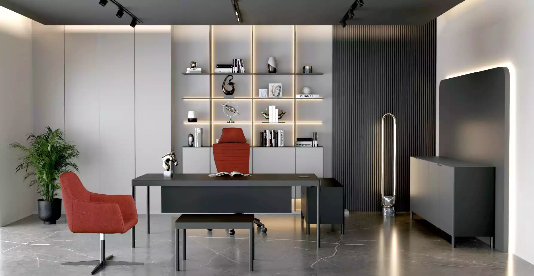 Dank senger variabler Gréisst, déi op ca: 175 x 202 x 76 cm, ca: 195 x 202 x 76 cm, oder ca: 235 x 202 x 76 cm ugepasst ka ginn, ass dësen Eckschreifdësch besonnesch flexibel a ka fir all Raum ugepasst ginn. Déi robust Bauweis garantéiert eng laang Liewensdauer an et ass déi ideal Léisung fir déi, déi Funktionalitéit a Stil wëllen kombinéieren. Benotzt dëst exzeptionellt Mëbeldue fir en effizienten an organiséiert Aarbechtsberäich ze gestalten oder als stilvollen Treffpunkt fir Clienten an Kollegen an engem modernen Bürosëmfeld. Mat sengem eleganten Design an der qualitativ héijer Veraarbechtung ass dëst Möbelstéck en 'Muss' fir all Arbeitsplatz deen Wichtegkeet op Ästhetik a Funktioun leet.