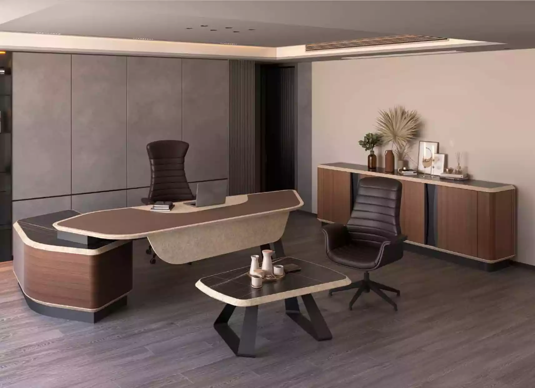 Modernen Eckschreibtisch Bürosmiwwel Chefdësch Chefdësch Braun