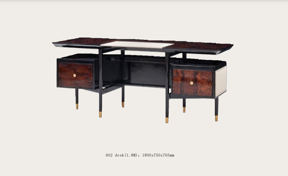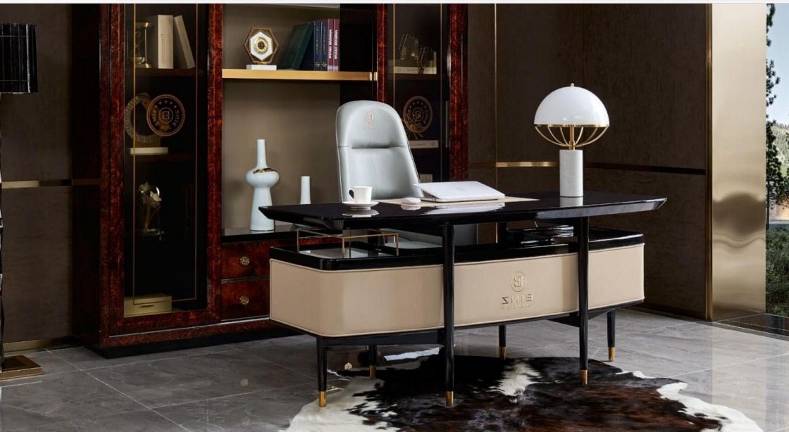 De Schreifdësch ass ideal fir verschidden Aarbechtsëmfeld, egal ob Dir an engem professionnelle Büro oder an engem Heemstudio schafft. Seng grouss Uewerfläch erliichtert et Iech, Är Geräter an Dokumenter effizient ze organiséieren an gleichzeitig Plaz fir kreativ Iddien ze loossen. D'Konstruktioun aus raffinéiertem Holz an Edelstol bitt net nëmme Robustheet, mee och eng Zäitlos Ästhetik, déi sech nahtlos an all Zort Dekor aschléisst. Egal ob Dir un wichtegen Projeten schafft oder einfach Är alldeeglech Aufgaben erfëllt, dësen Dësch ënnerstëtzt Är Produktivitéit a schafft eng inspiréierend Aarbechtsëmwelt.
