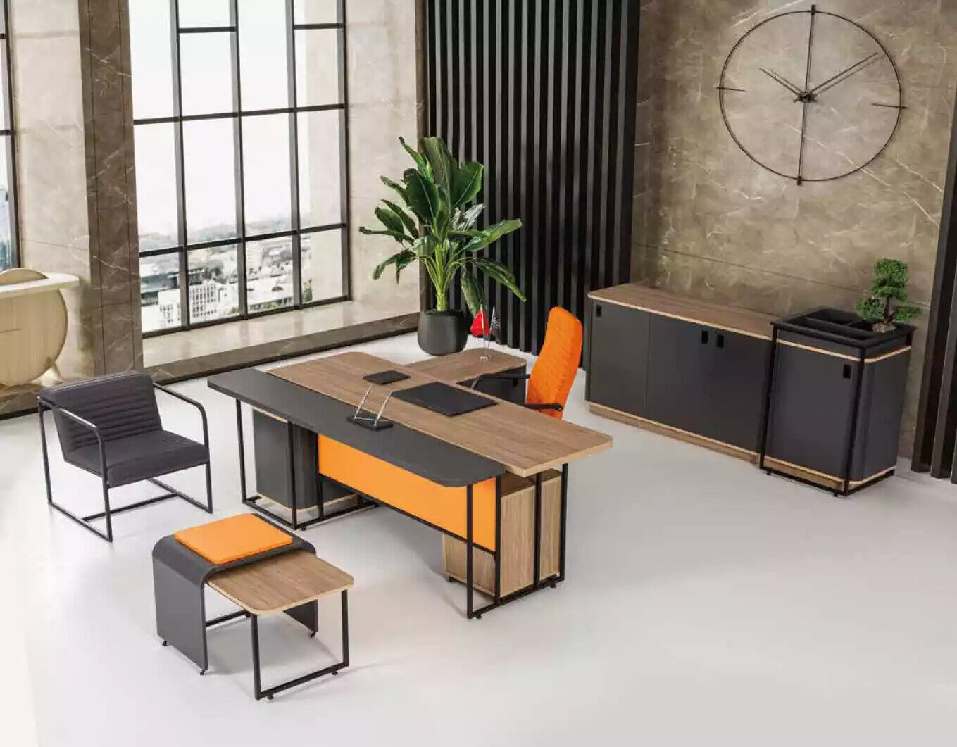 Egal ob am Heimbüro oder am professionelle Büro, dësen moderne Eckschreibtisch kreéiert eng effiziente an organiséiert Aarbechtsëmwelt. D'Struktur vum Tisch erlabt Iech, Är Technik an d'Dokumenter effizient ze organiséieren an ëmmer autoriséierten Zougang zu allem wichtegen Material ze hunn. D'beschte Faarfpassungen an dat originellt Design maachen dësen Eckschreibtisch zu engem ganz versatile Miwwelstéck, wat perfekt mat bestehende Dekor kombinéiert ka ginn. Gitt Ärem Büroplatz en Touch vu Modernitéit an Eleganz mat dësem exzeptionelle Schreibtisch.