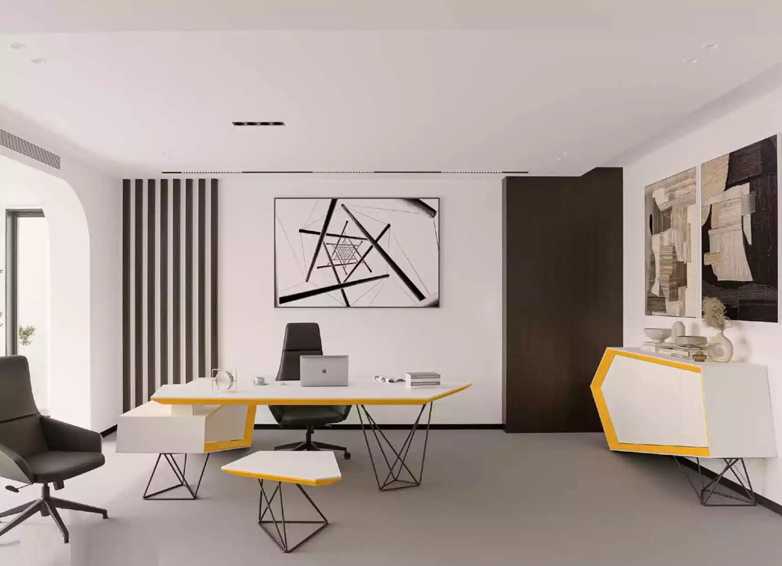 Dëse Luxus Designer Dësch ass ideal fir divers Notzungsszenarien. Egal ob Dir heem schafft oder en modernen Workspace an Ärem Büro plangt, dësen Dësch bitt genuch Plaz fir computergestëtzt Aarbechten, Entwërf oder simpel Administratiounsaufgaben. Mat sengen geschniddegdraufzenge Laangen an Breet huet hien déi optimal Form fir a praktesch all Raum integréiert ze ginn. De staarke metalene Kader garantéiert eng laang Dauerhaftigkeit an d'Qualitéit vum Holz suergt fir eng raffinéiert Ästhetik. Liwwert optimal Plaznotzung ouni Komfort oder Stil ze verléieren - en Zousaz zu Ärem Aarbechtsëmfeld, deen sech lount.
