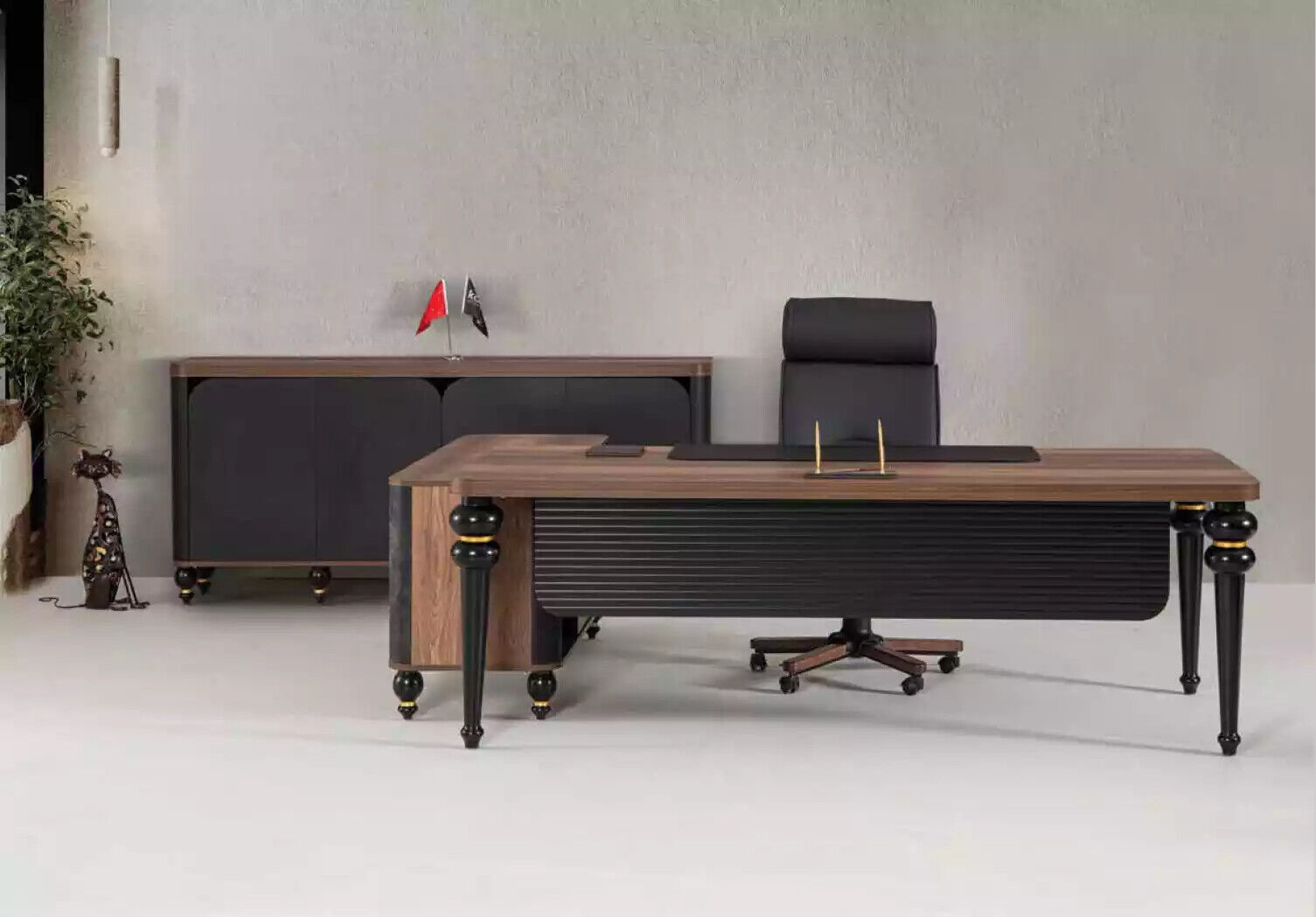 De 'Groussen Holz Eckschrëff Dëscher Aarbechtszëmmermiwwelen Chef Dëscher Holzmiwwelen' ass e stilvollen a funktionelle Miwwelstéck, dat elegant an Ärem Aarbechtszëmmer erausstécht. Mat sengem majestéiteschen Design passt hien an all Ambiance, déi e Gefill vu Seriositéit an Nohaltegkeet vermëttelt. De Schräin ass aus qualitativ héichwäertegem Holz hiergestallt, wat fir eng laang Liewensdauer a Robustheet suergt. Mat engem raimege Layout vun 240 cm Längt an 190 cm Breet, bitt dësen Dësch maximale Platz fir Är Bürosaarbechten ouni datt et iwwerlaascht wierkt. D'Faarf vum Holz, wéi ofgebilt, liwwert zousätzlech e waarmt Erfarungsgeschmaach, dat an all Raum Glanz bréngt.