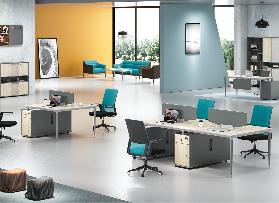 Dës Ariichtung ass speziell entwéckelt fir Gruppenaarbecht an Teamentscheedungen am Callcenter mat abegraff ze verbesseren. Mat bis zu véier Aarbechtsplazen bidd dësen Dësch genuch Raum fir effizient Zesummenaarbecht an Austausch tëscht den Team Memberen. D'Faarf vum Schreifdësch entsprécht dem Ofbild a kreéiert eng frëndlech an oppe Aarbechtsëmfeld. Duerch seng robust Konstruktioun ass en ideell fir intensiv Notzung am hekteschen Alldag vum Callcenter. Setzt op d'Flexibilitéit an d'elegant Ästhetik vum Miwwelen Ariichtung Ausstafféierung Dësch fir e funktionelle an agreabelen Arbeitsplatz ze gestalten.