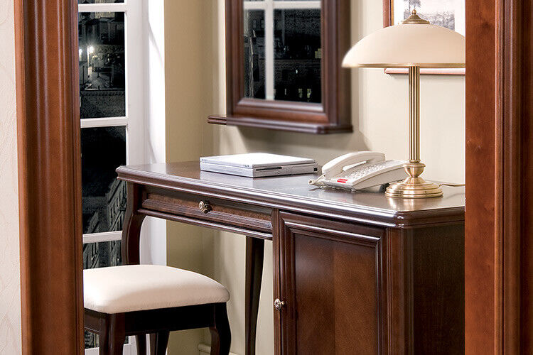 De Klasseschen Designer Spigel Italienesch Miwwelen Wandspigel Holz - Modell W-LP ass en exzeptionellt Stéck, dat en Touch vu Luxus an Eleganz an Äert Heem bréngt. Mat enger Héicht vun ongeféier 1510 mm, enger Déift vun 65 mm an enger Breet vu 636 mm, passt dëse Spigel perfekt an all Raum, egal ob et an engem Schlofzëmmer, Stot oder Wunnraum ass. D'Korpus ass aus héichwäertegem massivem Holz gemaach a lackéiert, fir en dauerhaften a reizvolle Look ze garantéieren. D'Réckwand an d'Ablagebrieder bestinn aus MDF, dat furnéiert a lackéiert ass, dat fir eng glat a modern Ofschloss suergt. Mat der Optioun vun Faarfwahl kënnt Dir dësen aussergewéinleche Miwwelstéck un Är perséinlech Dekorgewënner upassen.