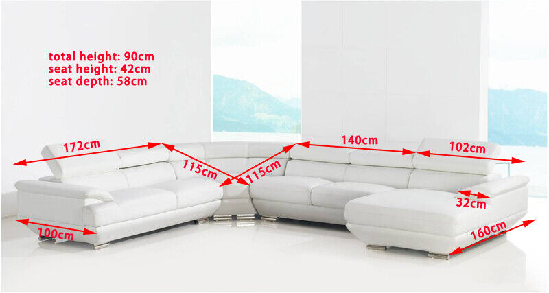 Entdeckt d'Komfort an den elegante Stil vun eiser Design Eckcouch Lieder Sofa Canapé Polster Eck Wunnlandschaf Sëtz Garnitur. Mat engem luxuriéisen Design deen sech perfekt an äre Wunnraum integréiert, bitt dëse Canapé net nëmmen Komfort mee och Stil. Mat enger Gréisst vun ongeféier 267 x 339 x 174 cm oder 174 x 339 x 267 cm ass en ideal fir grouss Raim, während seng Héicht vun 90 cm an eng Sëtzdéift vun 58 cm dat héchste Komfortniveau garantéieren. De Canapé ass mat Premium Liederfaserstoff (70% Lieder / 30% Polyester) bedeckt, a kënnt an enger fräier Faarfwahl, sou datt dir e perfekt mat ärer bestehender Dekoratioun maache kënnt.