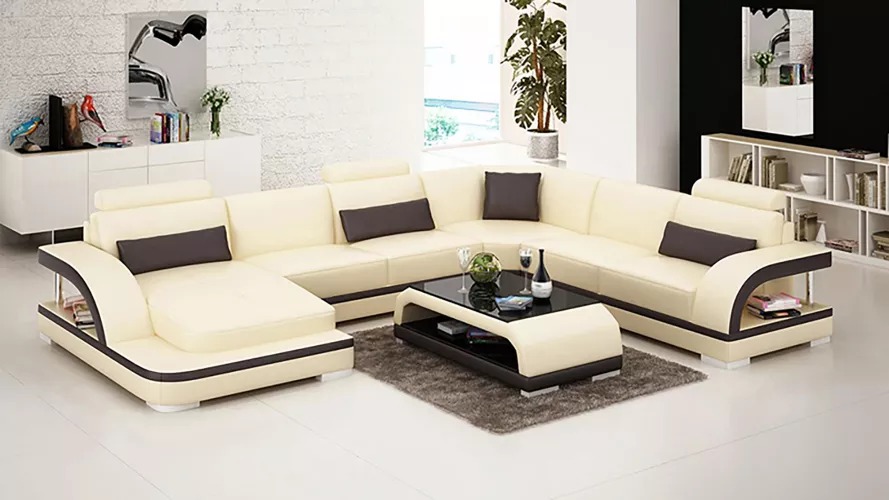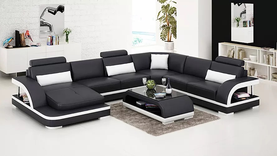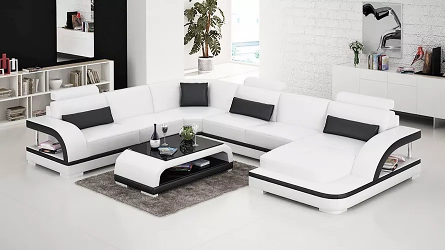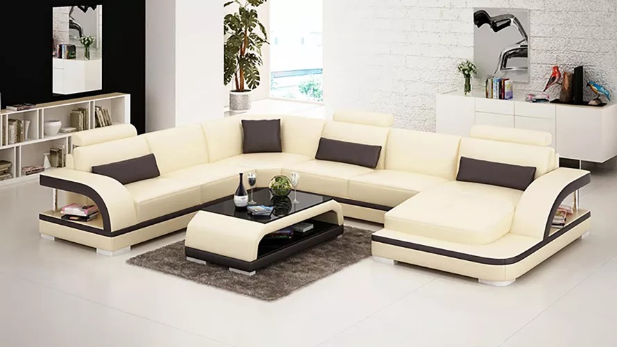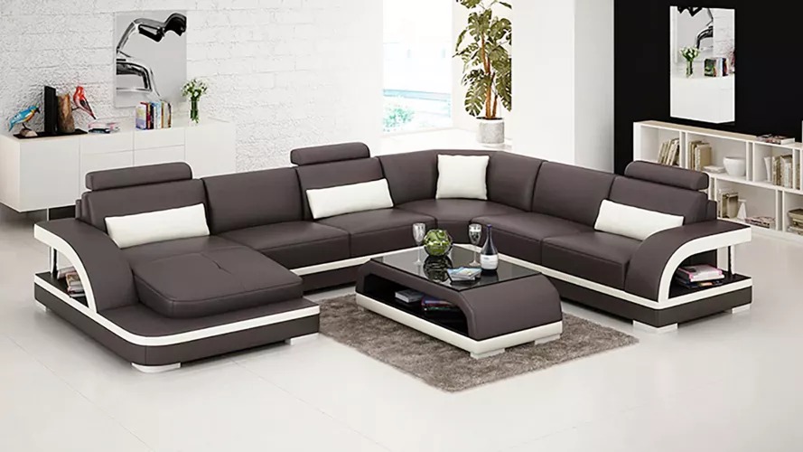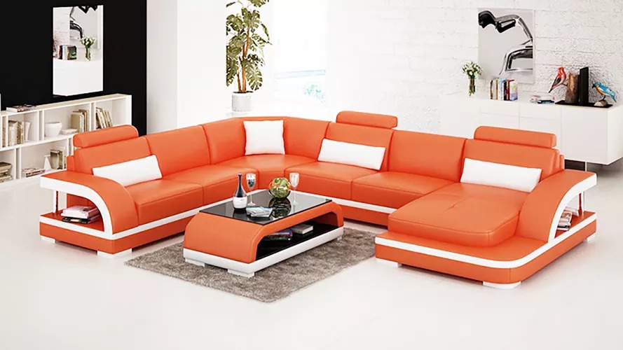 Kaaft en U-förmegen Ecksofa, bëlleg, mat Liederpolsterung, Sofa fir d’Wunnzëmmer.