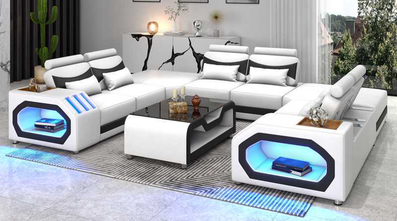 Design Wunnlandschaft Grousst Sofa XXL U Form Ecksofa Ledersofa Rout LED
