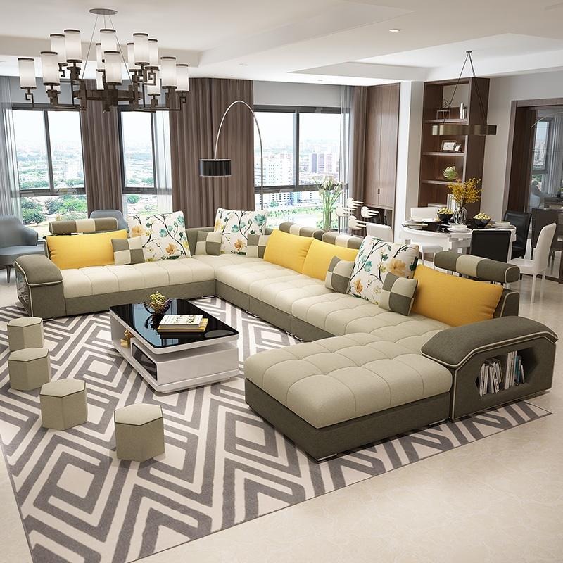 Kaaft e U-fërmegt Ecksofa, bëlleg, mat Liederpolsterung, Sofa fir d'Wunnzëmmer.