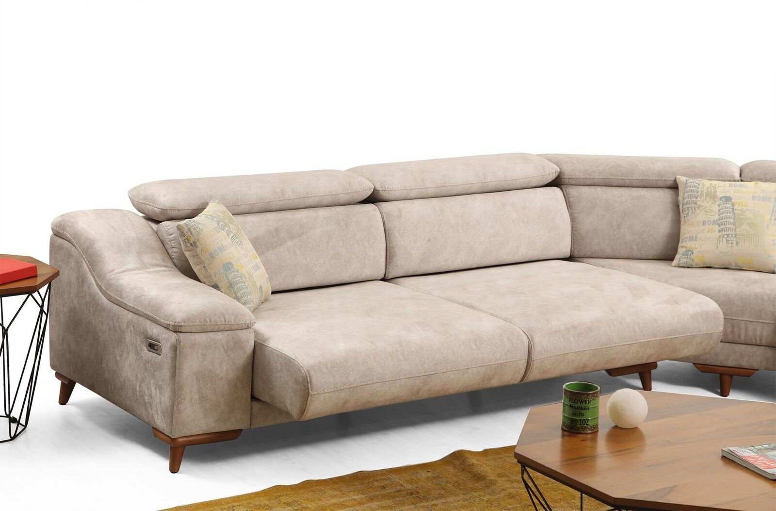 Dësen Ecksofa ass ideal fir grouss Wunnraim, wou et seng **U-Form als zentraalt Designelement ervirhuet**. Duerch seng **multifunktional Gréisst** kann et als Trennung fir verschidde Bewunnungsberäicher genotzt ginn, oder als Versammlungsplaz fir grouss Gesellschaften. De Sofa ass a verschiddenen Nofroen erhéichbar a suergt dofir, datt et mat Ärer bestehender Dekoratioun harmonesch funktionnéiert. Egal ob fir e gemittlechen Owesiessen oder e Filmowend, dësen Sofa ass den ideale Begleeder fir all Aktivitéit.