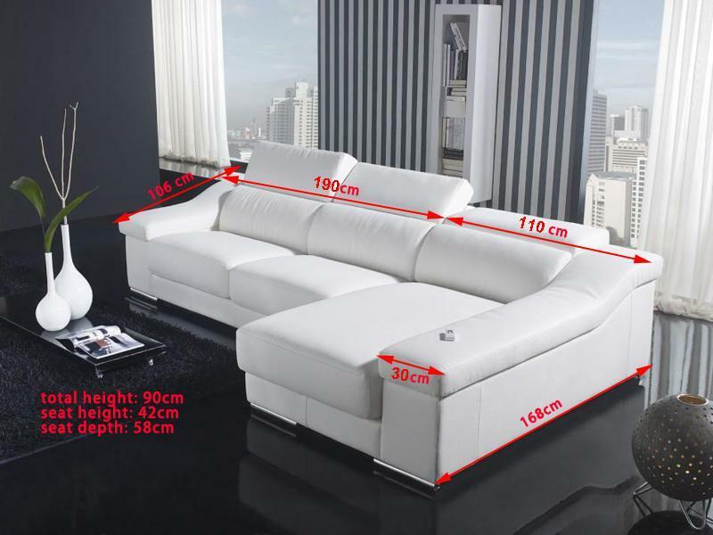 Den 'Eckcanapé Eckgarnitur Wunnlandschaft L-Form Sofa Ecksofa Garnitur Polster' ass déi ideal Ergänzung fir äert Wunnzëmmer, mat senger stilvoller an multifunktionaler Konstruktioun. Dëst elegántt Ecksofa ass a variabelen Dimensiounen erhaalbar vun entweder 300 x 168 cm oder 168 x 300 cm, wat optimal Flexibilitéit fir all Raumkonfiguratiounen bitt. Mat enger Héicht vun ca. 90 cm, enger Sëtzhéicht vun ca. 42 cm, an enger Sëtztiefe vun ca. 58 cm, proposéiert de Sofa en aussergewéinlecht Komfortniveau. Et ass aus Premium Lederfaserstoff gemaach, wat 70% Lieder an 30% Polyester ëmfaasst, fir e luxuriéis Gefill mat laanghalender Haltbarkeet. E puer weider Optiounen sinn am Shop verfügbar, dorënner Premium Echtleder an Premium Textilstoff, fir eng individuell Upassung no perséinlechem Goût an Budget.