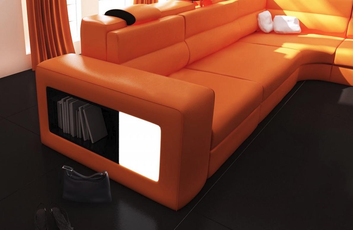 Dës Sofa ass perfekt fir modern Wohnzimmer a bidd e Mëttelpunkt, deen nahtlos Ënnerhalung am grousse Stil erméiglecht. De Korpus vun der Sofa ass mat enger interner Konstruktioun aus richtegem Holz gemaach, wat laang Liewensdauer a Stabilitéit garantéiert. Optiounen fir individuell Faarfwahl erlaabt Iech, de Stil vun Ärer Wunnzëmmer unzepassen, an déi italienesch Rëndslieder bidden eng luxuriéis Haptik op de Sëtzfläche, Réckelen, an der Bannen Säiten vun den Aarmleenen. Ob fir e Filmowend, e Familljen-Treffen oder e gemittleche Liesenachmittag, dës U-förmegt Sofa wäert all Bedierfnes erfëllen an en Harmonium vun Funktionalitéit a Mode ubidden.