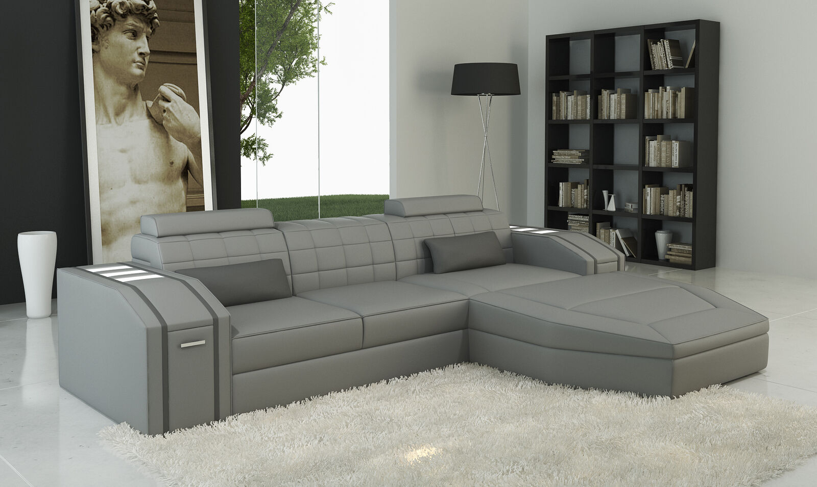 Beliichte Wunnzëmmer Liederdivan Sofa Eck Couche Wunnlandschaft Grouss