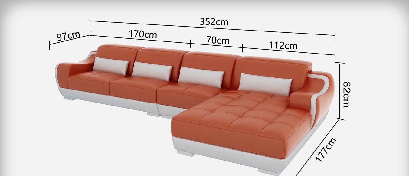 Nieft senger raffinéiertem Design huet Dir déi Fräiheet dës Couch an Ärer favoriséierter Faarf ze wielen, riicht sech no Äre Wënsch ënner dem Reiter "Faarwen". Fir déi, déi en nach méi héijen Luxusniveau wëllen, bidde mir verschidde Materialoptiounen un, wéi zum Beispill Premium Echtlieder oder Vollleder fir eng Zousazkäschte. Fir nach méi Komfort kënnen elektrësch Relax-Foussstëtz, e Becherhalter Frigo, e fortgeschratt Soundsystem oder ënnerbuedem Beleuchtung, déi per Fernsteierung kontrolléiert gëtt, als Extraen dobäi geholl ginn. Dës Optioun mécht Äert Wunnzëmmer net nëmmen eist drëms z'entspanen, mee och perfekt fir housewarming Partien oder Filmabennyen mat Frënn a Famill duerchzeféieren. Mat engem Federkernsëtz an engem robusten Holzgestell, engagéiert dës Couch sech un Qualitéit a Stil fir Äre Liewensstil ze verbesseren.
