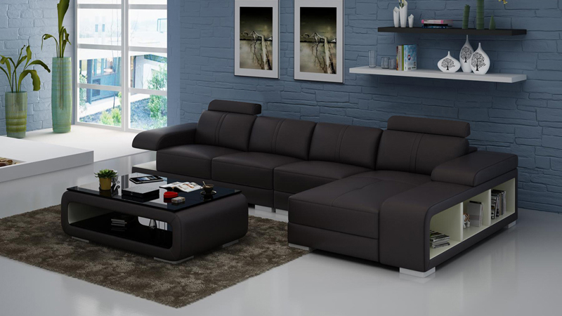 Modern L-fërmegt Ledersofa am schéine modernen Designerstil