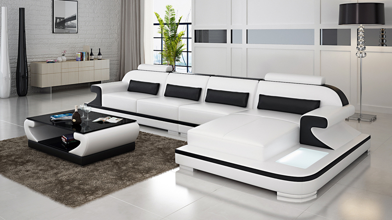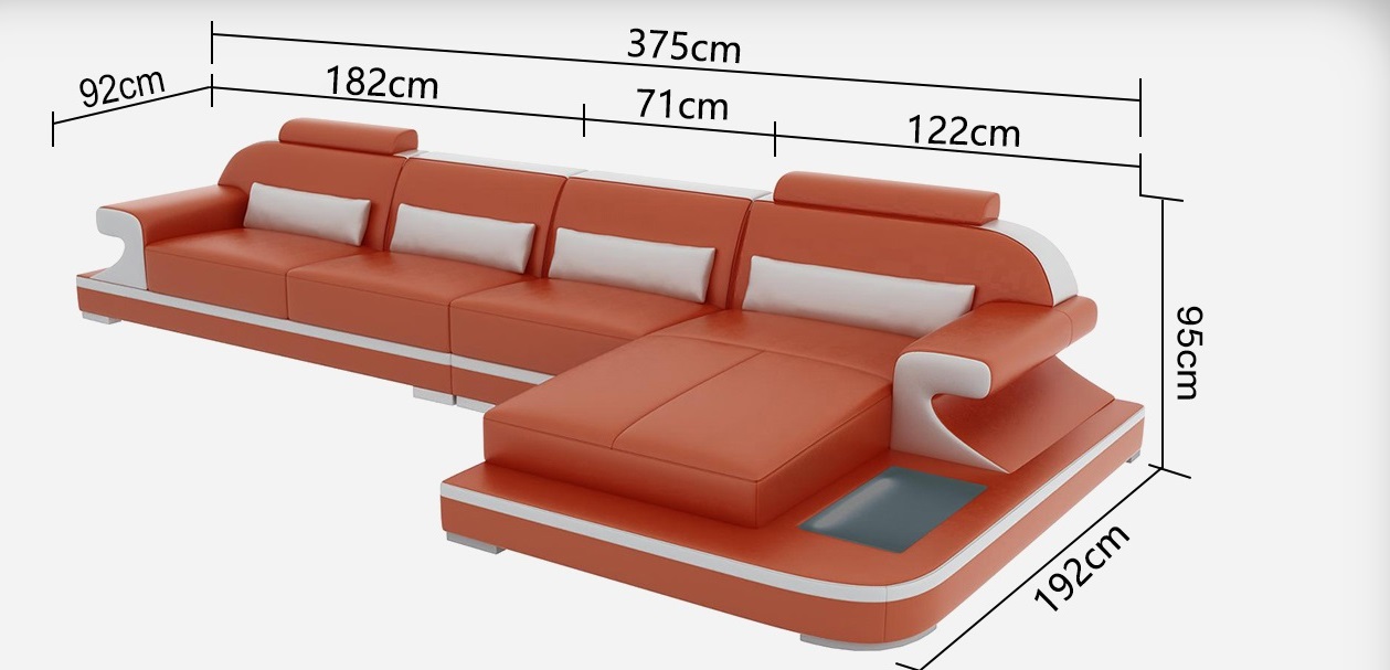 Déi modern Ledercouch Couch Wunnlandschaft Ecksofa Eck Garnitur Design Modern Sofa G8021C kombinéiere stilvoll Eleganz mat héchster Qualitéit. Mat der Méiglechkeet vun enger fräier Faarfwahl kritt Dir en eenzegaartegt Stéck, dat perfekt an Äeren Interieur passt. D'Material besteet aus Premium Liederfaserstoff (70% Lieder / 30% Polyester), wat héichwäerteg Komfort a Langlebëgkeet garantéiert. Dës Couch bitt eng optional Ënnerbuedembeleuchtung fir eng extra atmosphäresch Beliichtungserfarung, e passenden Couchtisch a souguer eng Bettfunktioun fir multifunktional Notzung.