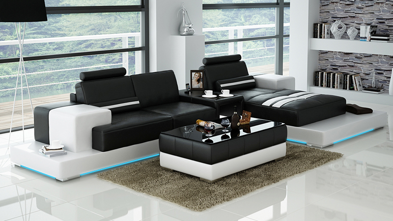 Ledersofa Couch Wunnlandschaft Ecksofa Eck Garnitur Design Modern Sofa L6004D