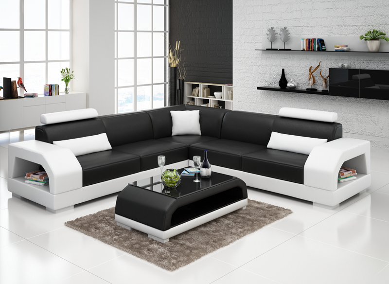 Ledersofa mat USB Wunnlandschaft Ecksofa Eck Garnitur Design Moderne Sofa G8001B