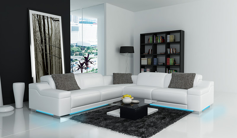 Eckssofa, Wunnzëmmer-Miwwelen, L-fërmeg Eckssofa