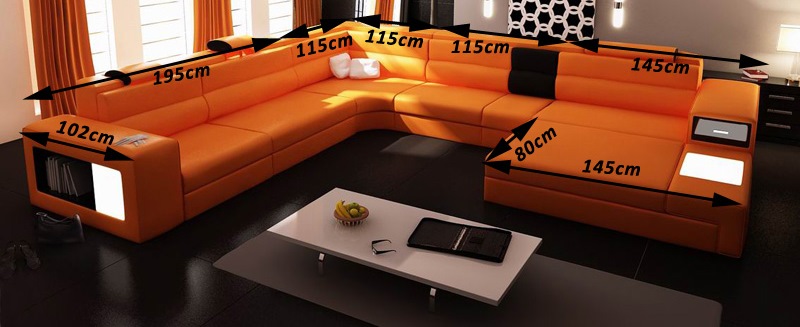 U-fërmegt Sofa, Designer-Sofa, Wunnzëmmermébel