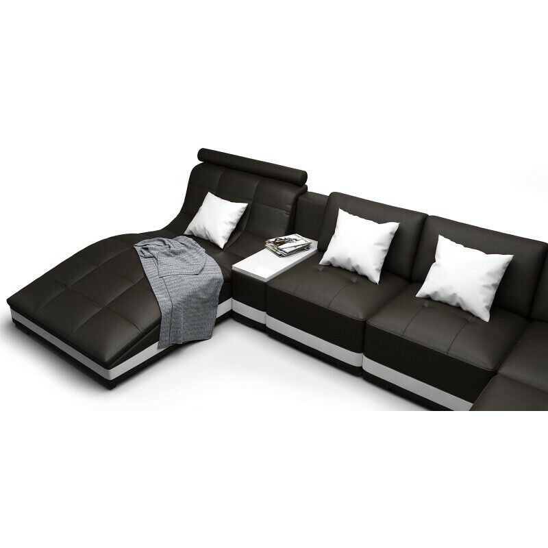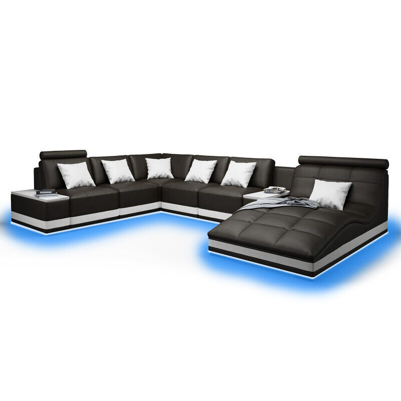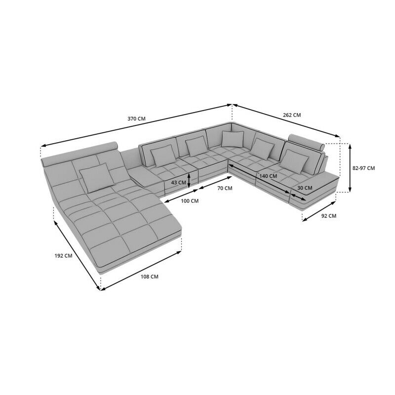 D'Features vun dëser wunderschéiner U-Form Sofa sinn net nëmmen ästhetesch, mä och extrem praktesch. Si ass ideal fir grouss Wunnraim oder als Mëttelpunkt fir eng luxuriéis Lounge Beräich. Dëse Sofa kéint perfekt de Loungebereich bei Iech doheem verbesseren, an huet gläichzäiteg d'Kapazitéit fir bequeem Famill oder Gäscht ze empfänken. Ob s du eng stille Owesstonn mat engem Buch deelt oder e gesellegen Filmowend organiséiers, d'Liederensofa NiddaA passt perfekt un all Occasioun. D'Use vu qualitativen italieneschen Rëndslieder op den Sëtzflächen, Réckleenen an d'Bannensäiten vun den Aarmleenen versprécht eng Zäitlos Eleganz an Haltbarkeet déi joerelaang dauert.