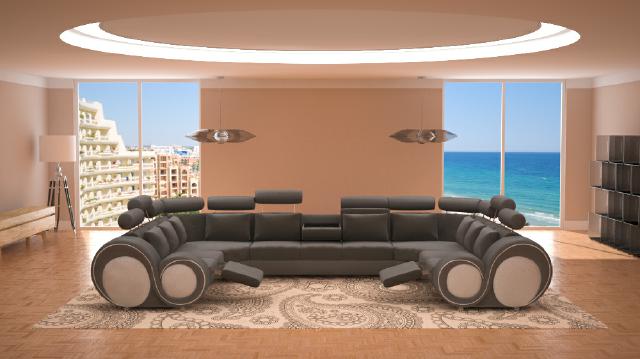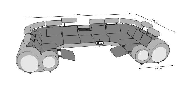 Ideal fir grouss Raim wéi Living Rooms oder Loftflächen, dës Couch bid zur allgemenger Wuelbefanne bäi an ass perfekt fir zesummenzehaange Momenter mat Frënn a Famill. Den innenen Holzrahmen garantéiert Stabilitéit a Robustheet an déi divers Materialoptioune bidden méi Flexibilitéit fir d'Stëmmung vun Ärem Raum unzepassen. Mat opfalenden Detailer a präzis Veraarbechtung ass dës Wunnlandschaft net nëmmen en Sitzmëttelpunkt, mä och e dekorativen Highlight, deen d'Ästhetik an d'Praktikabilitéit harmonesch kombinéiert. Egal op Dir eng gemittlech Liesnook oder en emotionalen Kinofilmowend plangt, dës Couch ass Ären ultimativen Begleeder am Stil an Komfort.