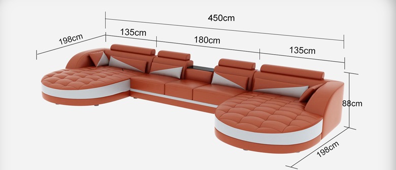Entdeckt den **Modernen Design U-Form Ecksofa fir e stilvollt Wunnzëmmer**, deen Ärem Heem e raffinéiert a komfortabel Touch gëtt. Mat senge grousse Moossen vun **ca. 198 x 450 x 198 cm** bitt dëse Sofa genuch Plaz fir déi ganz Famill an ass ideal fir gréisser Wunnzëmmeren. D'Héicht ass **ca. 88 cm** an d'Sëtz Héicht ass **ca. 42 cm**, wat en ergonomeschen Komfort beim Sëtzen séchergëtt. Hien ass mat enger USB-Klickautomatik mat **3xfach Steckplatz INKLUSIVE** ausgestatt, fir Iech eng praktesch Opluedoptioun fir Är Apparater unzebidden. Dir kënnt aus verschiddene Faarwen auswielen, déi Iech erméiglechen, de Sofa un den Dekor vun Ärem Haus unzepassen. D'Material besteet aus **Premium Liederfaserstoff** (70% Lieder / 30% Polyester), wat d'Liewensdauer an de Komfort erhéicht.