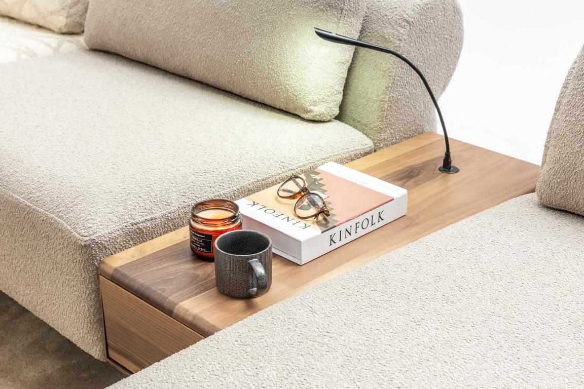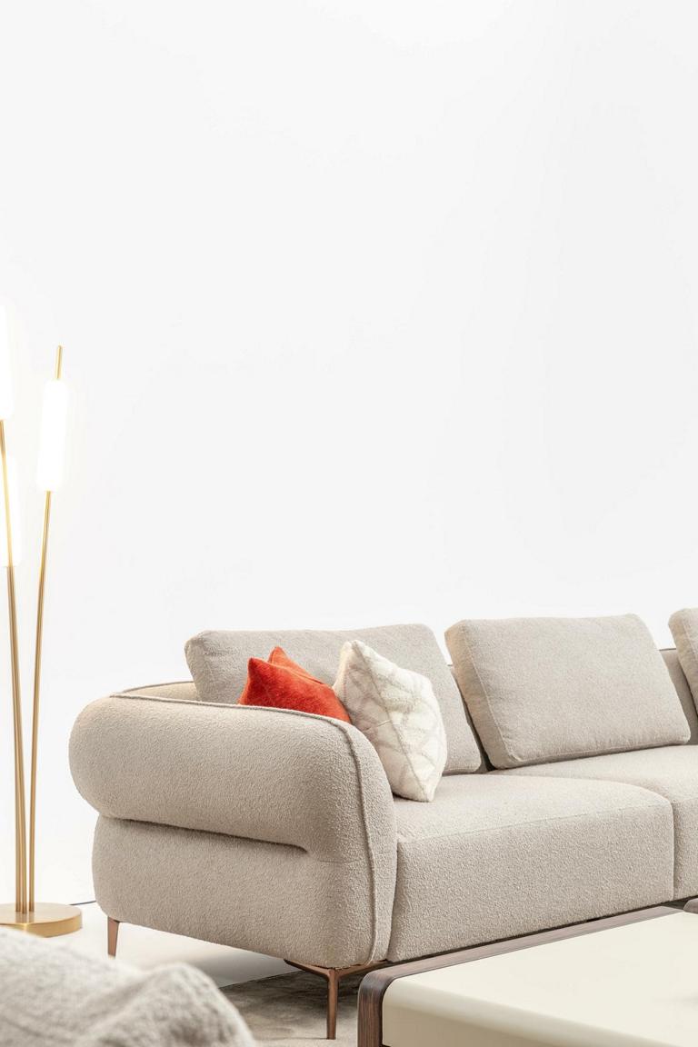Dëse Ecksofa U-Form ass net nëmmen ästhetesch, mee och flexibel a senge Méiglechkeeten. Perfekt fir déi grouss Familljebesammlungen oder wann Dir besonnesch e komfortabele Plaz wëllt schafen fir Är Lëftung vun Akafen oder soziale Geleeënheeten. Dank den tiefen Sëtzer an dësem Sofadesign kënne jiddereen sech entspanen a relaxen, egal ob Dir e Film kuckt oder mat Frënn schwätzt. Den dezenten a stilvollen Erscheinungsbild mécht dëse Sofa zu enger exzellenter Wiel fir all Heem, während seng Qualitéit fir en haltbaren a praktesche Muelstéck suergt.