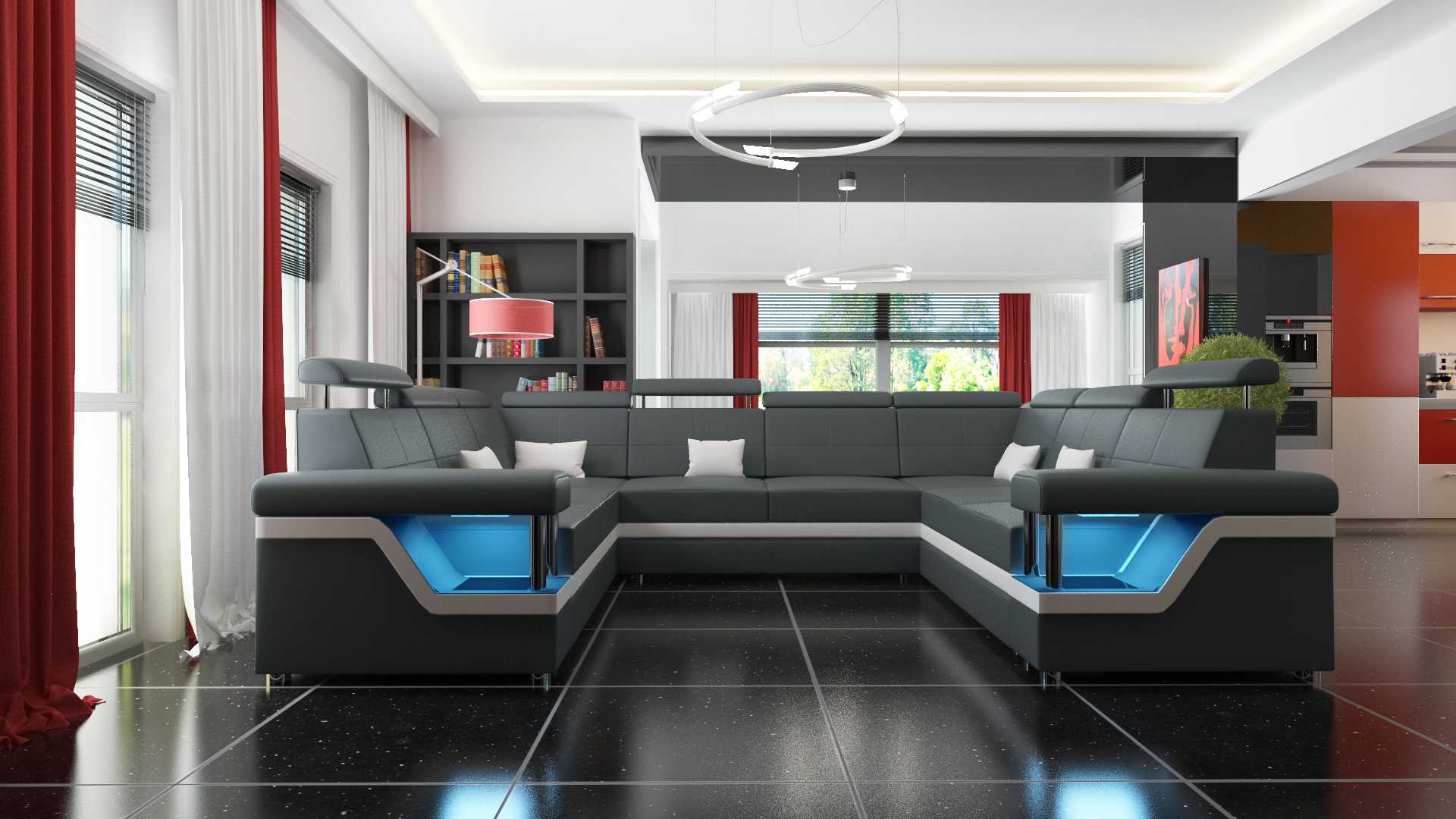 Eckcouch, Wunnzëimmermiewelen, U-fërmeg Eckcouch