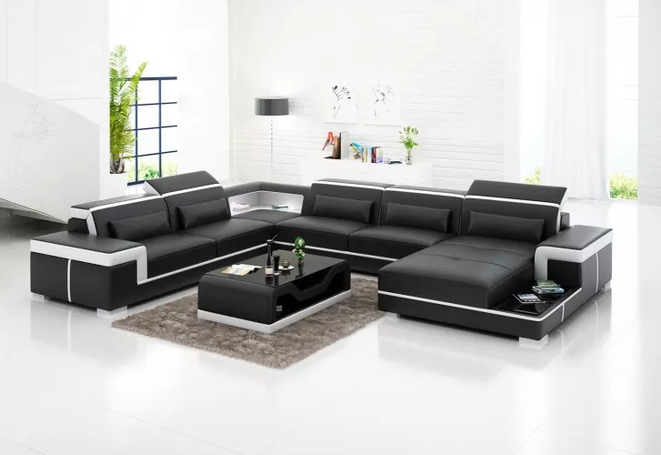 Miwwelset, Eckcouch an Dësch, héichwäerteg Materialien, moderne Stil