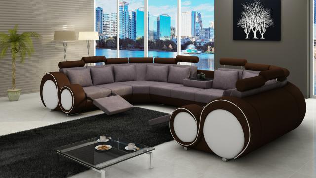 Dëst XXL Ecksofa ass perfekt fir déi, déi Wäert op Stil a Funktionalitéit leeën. Ideal fir grouss Wunnzëmmer, bidd se obwuel Plaatz fir Entspanung a Gläichzäit e modernen Touch. Deem weider, mat italieneschem Rëndsfell an enger Nahtdickt bis zu 2,50 mm op de Sëtzflächen, Réckelen, a bannenzegen Armanleenen, verleeft dës Canapé e Gefill vu Luxus a Raffinesse. Mat der Optioun Textil, Konschtlieder oder Echtlieder ze wielen, kann dëst Mëbbelstéck einfach op äre perséinleche Stil ugepasst ginn. Genéisst Momenter vun Entspanung an Stil, wärend Dir mat Äre Gäscht an dëser prestigiéiser a multifunktioneller Sëtzgeleeënheet lieft.