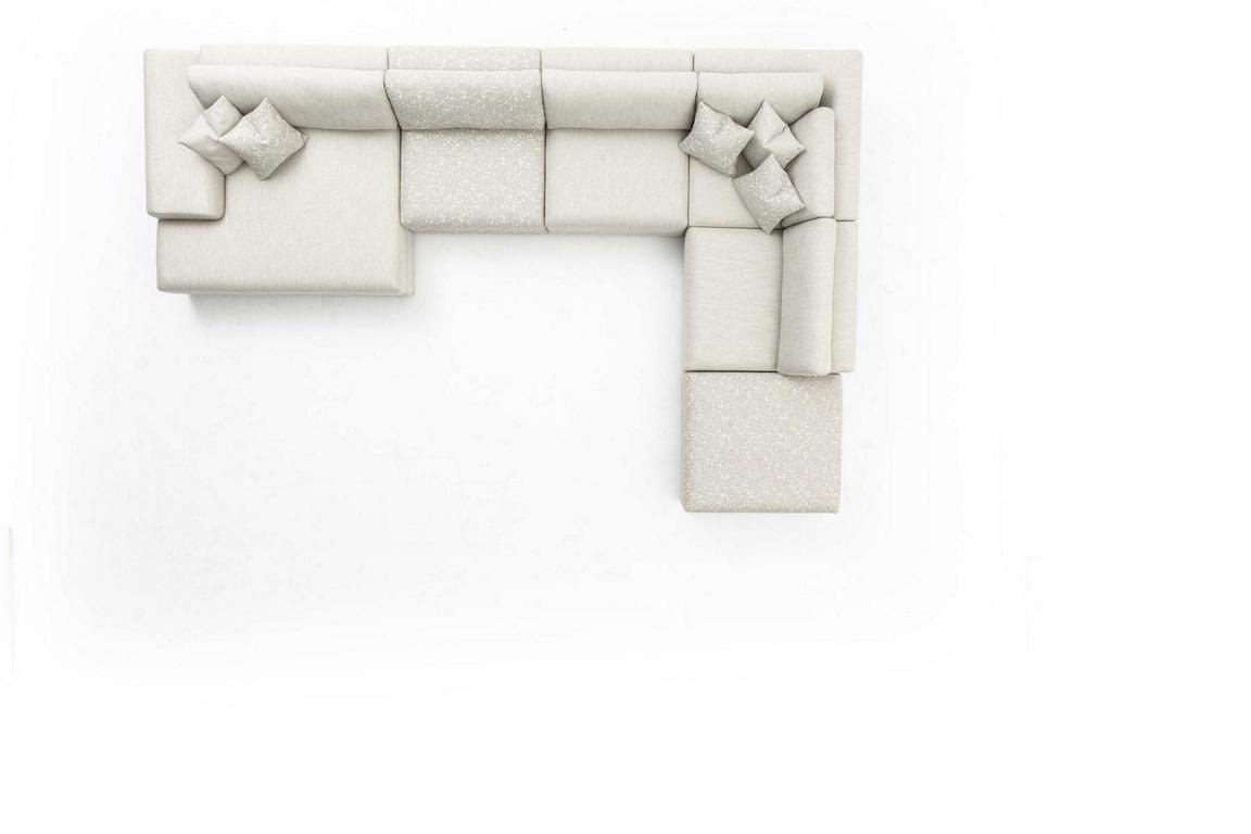 Dës **U-förmeg Couch** ass ideal fir flexibel Raumplanungen, well se sech liicht an all Wunnraum integréiere léisst. Dank hirem geräimegen Design, gëtt d'Couch zur zentraler Plaz fir Zesummenaarbecht oder Entspanung. Folglech ass et net nëmmen eng Plaz fir sech zréckzezéien, mee och eng, déi Interaktiounen fërdert. Dir kéint se benotze fir d'Owesstonn ze genéissen oder fir Visitten an engem gemittlechen an opgehimmelten Ambiente ze empfänken. Mat enger **geschnidden Ofschlossfaarf**, passt des Couch perfekt zu villen Ariichtungsstiler a bréngt hiree raffinéiert Eleganz an Äert Doheem. Entscheet Iech fir d'Eckcouch Wohnlandschaft a spréngt de Léifer vum Stil a Gemittlechkeet un.
