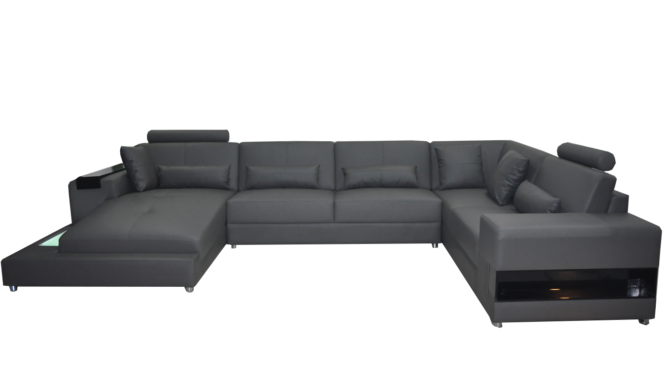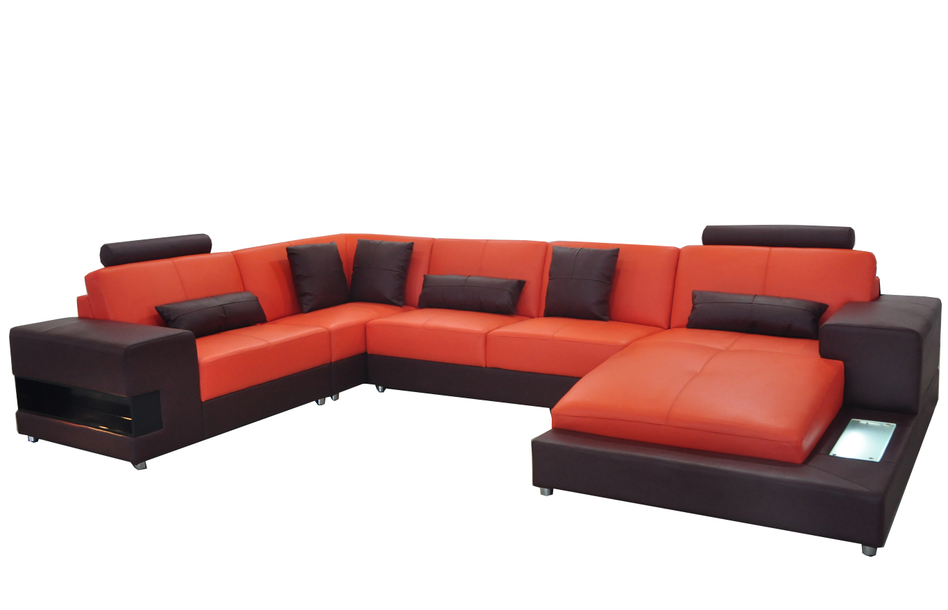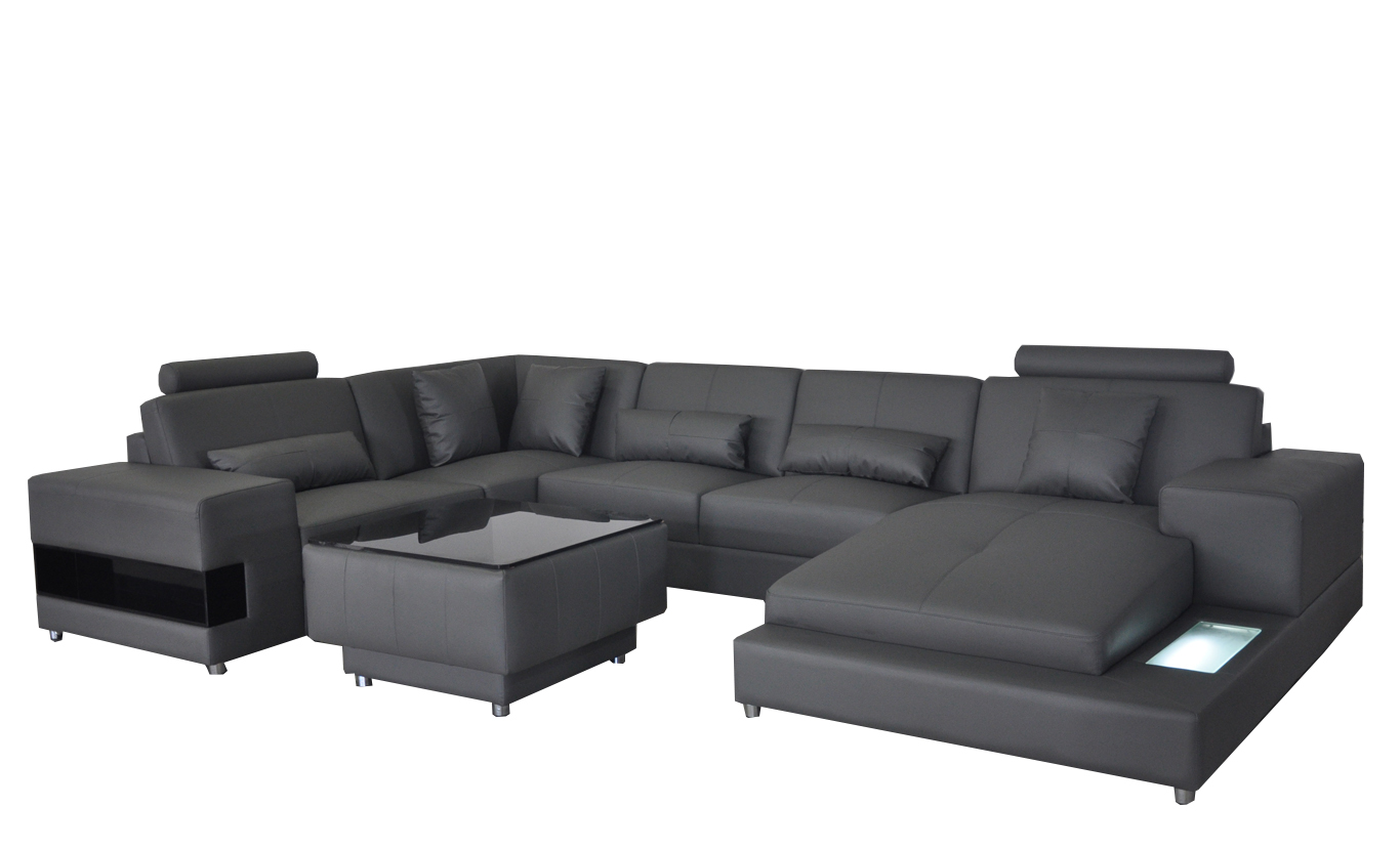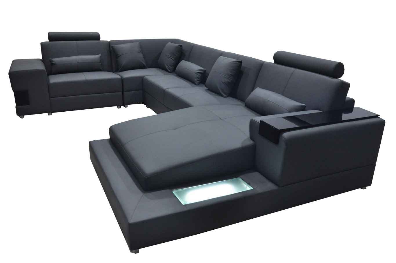 Ledersofa Canapé Wunnlandschaft Eck Garnitur Design Modern Sofa U-Form mat USB