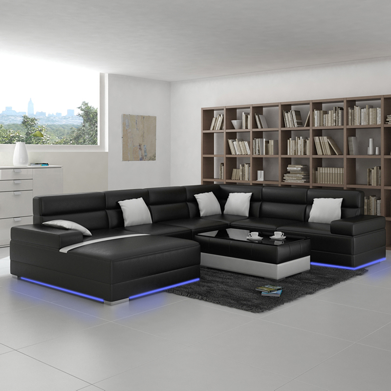 Ledercouch Sofa Wunnlandschaft Eckcanapé Eck Garnitur Design Modern Sofa U-Form USB