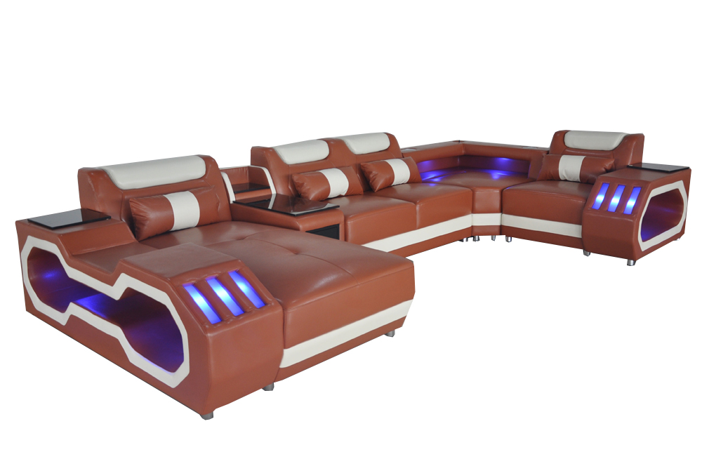 Des 'Liederdivan Canapé' ass net nëmmen ästhetesch beandrockend, mee och praktesch an hëllefräich am alldeeglechen Liewen. Mat optionalen Upgrades wéi engem elektresche Relax-Foussstütz, Becherhalter Frigo mat Kühlsystem, a modernt Soundsystem mat Bluetooth, kann déi ganz Famill eng relax a vergnüglech Zäit dobannen verbréngen. Dës Wunnlandschaft ass ideal fir Heimkino-Owender oder einfach fir e gemittlechen Nomëtteg Mat Ärer Léifsten. D'Fiederkern an d'Bannenstruktur aus richtegem Holz garantéieren zouverlässeg Haltbarkeet a laanglafend Notzung. Äre Wunnraum gëtt duerch dës modern a multifunktionell Divan een elegante Mëttelpunkt.