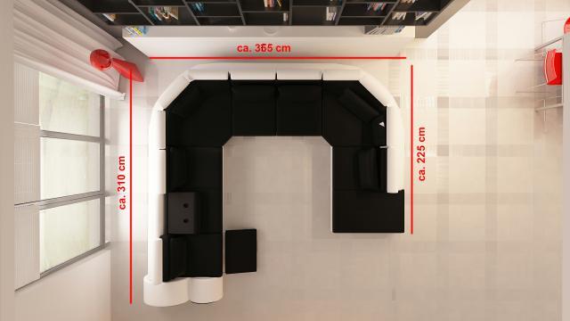 Dëse Sofa ass net nëmmen e Mëbelstéck, mä en zentraalen Punkt fir Äert Heem, perfekt fir grouss Familljen oder Leit déi gär Gäscht empfänken. D'Optiounen fir individuell Upassungen si räich: wielt aus Premium Echtlieder, Premium Textilstoff, oder och Premium Vollleder fir en extra Touch vu Luxuriéiskeet. Eng elektresch Relax-Foussstütz ass verfügbar, déi d'Geleeënheet bitt, en héich individualiséierten Komfort ze erliewen. Fir déi, déi Technologie gär hunn, ass en zousätzlecht Soundsystem mam USB an Bluetooth System verfügbar, während eng Ënnerbuedembeleuchtung eng stëmmungsvoll Atmosphär kreéiere kann. Maacht Är Zäite mat Frënn a Famill onvergiesslech op dësem XXL Sofa, wou Komfort a Stil treffen.