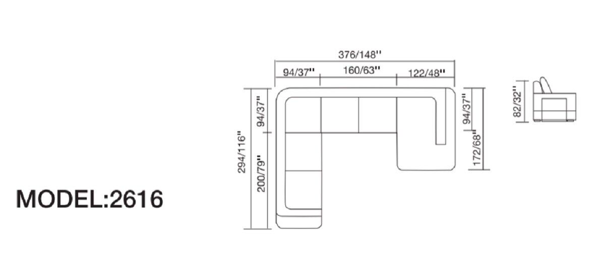 Längt: ca. 294 x 376 x 172 cm oder 172 x 376 x 294 cm
