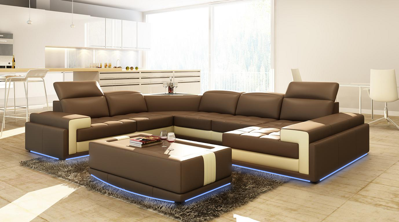 Ledercouch Couch Landschaftsecksofa Modern Eck Garnitur Design Dekor