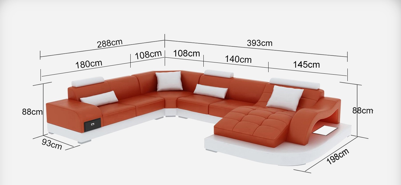 Eckcouch, Wunnzëmmerschmëttelen, U-fërmeg Eckcouch