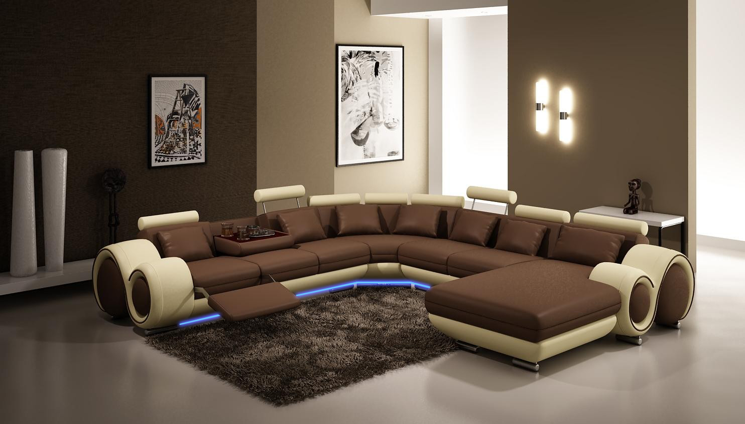 Ledersofa Canapé Wunnlandschaft Eckecksofa Eck Garnitur Design Modern Sofa A1163B