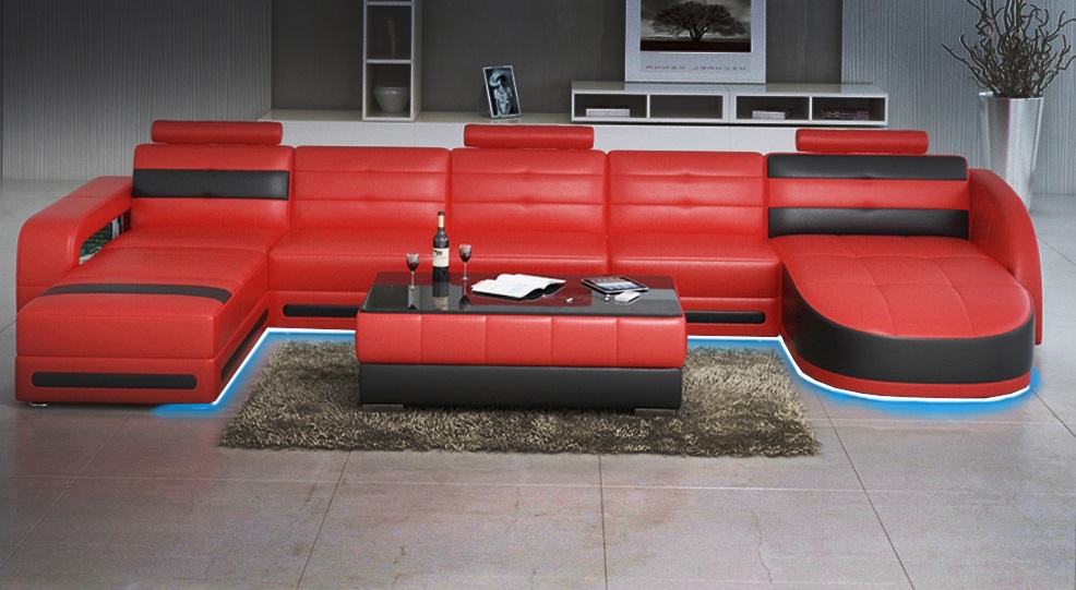 LEDERSOFA ECKSOFA mat USB DESIGNER PISA WUNNENLANSCHAFT COUCH SOFA U FORM COLO 3