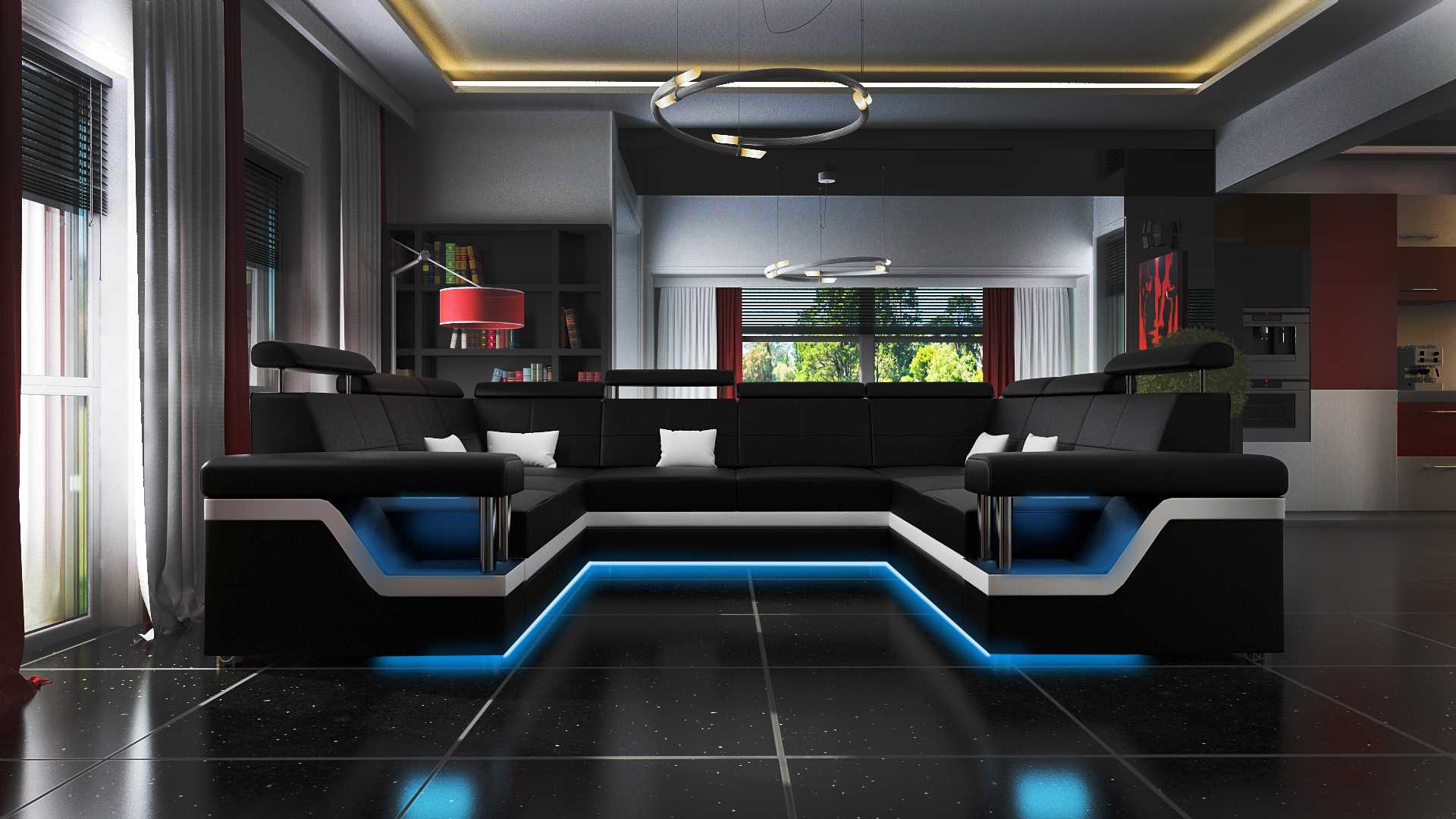 Den Liederdivan Grouss XXL Canapé Eckdivan Wunnlandschaft Canapé Polster Sëtz XXL Garnitur ass en exklusive Mëbelstéck, dat Komfort an Stil op d'héchst Niveau bréngt an Äer Wunnzëmmer verwandelt. Mat engem imponente Mooss vun ca. 260 x 350 x 260 cm bitt dëse Canapé genuch Plaz fir d'ganz Famill oder Frënn, fir eisen Momenter an Ofwuelung ze genéissen. Seng eenzegaarteg U-Form gëtt Är Plaz e modernen a gemittleche Look, während d'Premium Konschtlieder en eleganten Akzent setzt. Fir d'Temperatur ëmmer agreabel ze halen, ass dëse Canapé och mat Sëtzheizung ausgestatt. Wielt testen Optioun tëscht verschiddene Materialien, wéi Premium Textilstoff oder Italieenescht Echtlieder, a kreéiert eng Atmosphäre, déi Äre perséinlechen Goût reflektéiert.