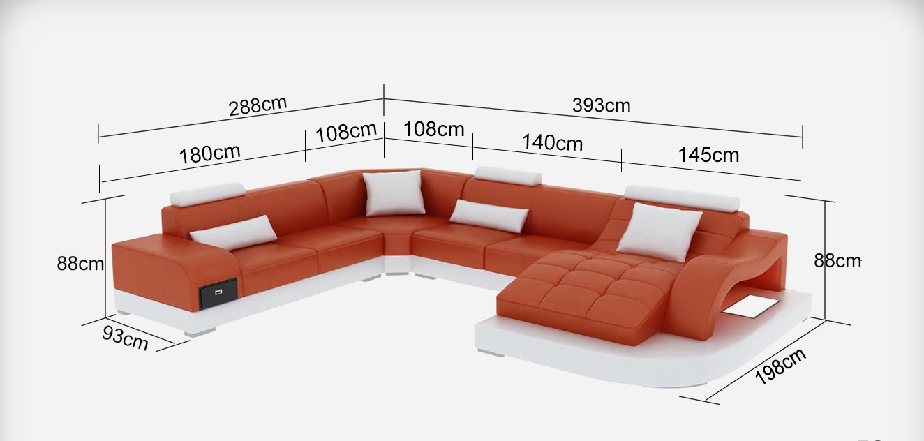 Entdeckt d'Raffiness vun eiser 'Lieder Sofa mat USB Modern Sëtz Couch Polster Design Eck Wunnlandschaft Dësch', déi en elegante Mëschung aus Stil an Funktionalitéit ubitt. Dës U-Form Couch, verfügbar a verschidden Dimensiounen vun entweder 288 x 393 x 198 cm oder 198 x 393 x 288 cm, ass perfekt fir all Wunnzëmmer. Mat enger héicht vun ca. 88 cm an enger Sëtzhéicht vun engem gemittlechen 42 cm, gëtt dësem Stéck Äre Raum eng entspaante Atmosphäre bie. De Premiummaterial ass en hochwäertegt Liederfaserstoff aus 70% Lieder an 30% Polyester, wat et robust a stilvoll mécht. Fir Individualitéit ass eng fräi Faarfwahl verfügbar, sou datt et perfekt zu Ärem Interieur passt. Zousätzlech ass eng praktesch USB-Klickautomatik mat dräifachem Stecker integréiert, fir Är elektronesch Geräter alle Zäiten bequem opzelueden.