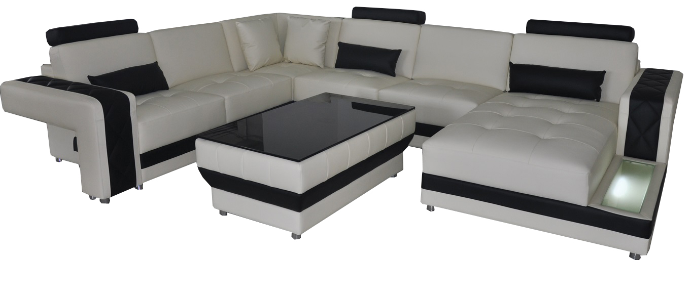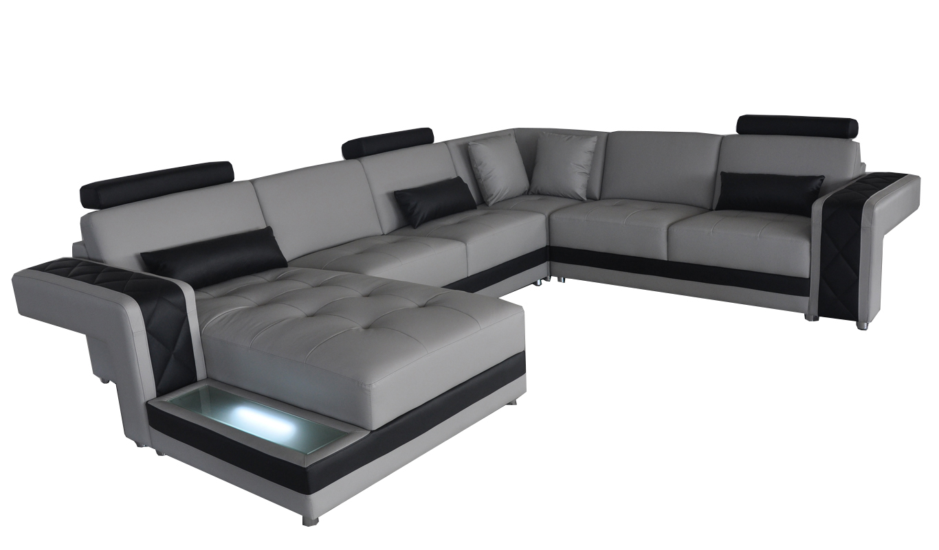 Ledersofa Canapé Wunnlandschaft Eck Garnitur Design Modern Sofa U-Form LED USB