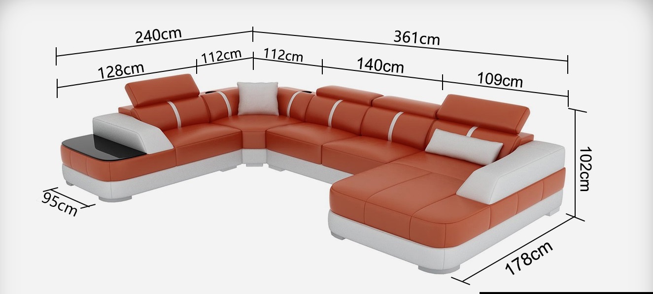 De 'Ledersofa Polster Sitz Eck Sofa Garnitur Wunnlandschaft Wunnzëmmer Canapé mat USB' ass déi perfekt Kombinatioun vu Komfort a Stil fir Äert Wunnzëmmer. Mat senge Moossen vun **ca. 178 x 361 x 240 cm** oder **ca. 240 x 361 x 178 cm**, passt dës Garnitur sech perfekt un all Raum un. D'Sëtz Héicht vun **ca. 42 cm** a Sëtzdéift vu **ca. 58 cm** garantéieren en oniwwenabar relaxant Erliefnes. D'Konstruktioun aus **Premium Liederfaserstoff** mécht de Canapé net nëmme robust, ma och ästhetesch zefriddestellend, an et gi verschidden Optiounen wéi **Echtlieder** oder **vollstänneg Textilstoff**, déi Är individuell Präferenzen entspriechen. De Sofa gëtt mat engem modernt **USB-Klickautomatik System (3xfach Steckplatz)** geliwwert, sou datt Dir Är Apparater bequem opluede kënnt.