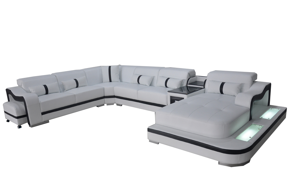 Dëse Sofa ass ideal fir déi, déi en opfällegen an modernen Touch an hir Wunnzëmmer brénge wëllen. Mat der **Optioun fir elektresch relax-Foussstütz** an **verstellbar Réckelehnen** kënnt Dir e personaliséierten Entspanungsberäich erstelle. Fir déi, déi gär Technik wëllen integréieren, bidd d'**Soundsystem-Optioun** mat **2x Sound Boxen + USB + Bluetooth System** eng exklusiv Tounleeschtung fir Är Liiblingsmusek. De **Becherhalter Frigo** ass eng zousätzlech Features fir jiddereen, deen säi Gedrénks gutt ofgekillt wëll behalen, während hien un enger Serie oder engem Film genéisst. Ofgeronnt gëtt dëse modernen Sofa duerch **Ënnerbuedembeleuchtung mat Fernsteierung**, déi verschidde Faarwe wiesselt fir e perfekte Stëmmungsléieren. Dëse Sofa ass d'Ideal Ergänzung fir all Empfangsberäich oder Wohnzimmer an offréiert e Relaxstandart, dee keng Wënsch offen léisst.