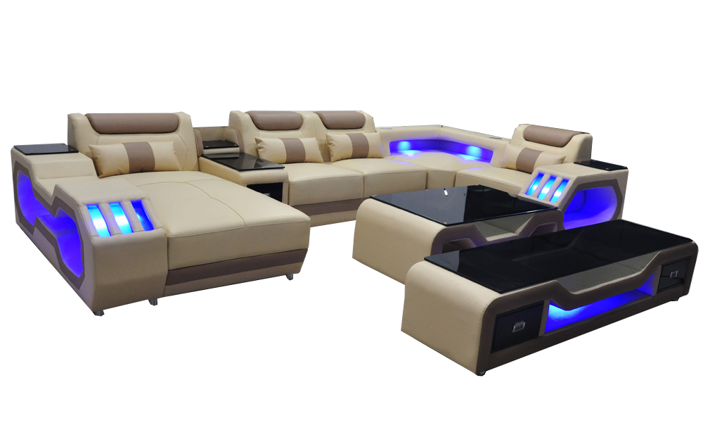 Lieder Sofa Eck Garnitur Design Sofa Wunnlandschaft + Canapé Dësch + RTV G8046