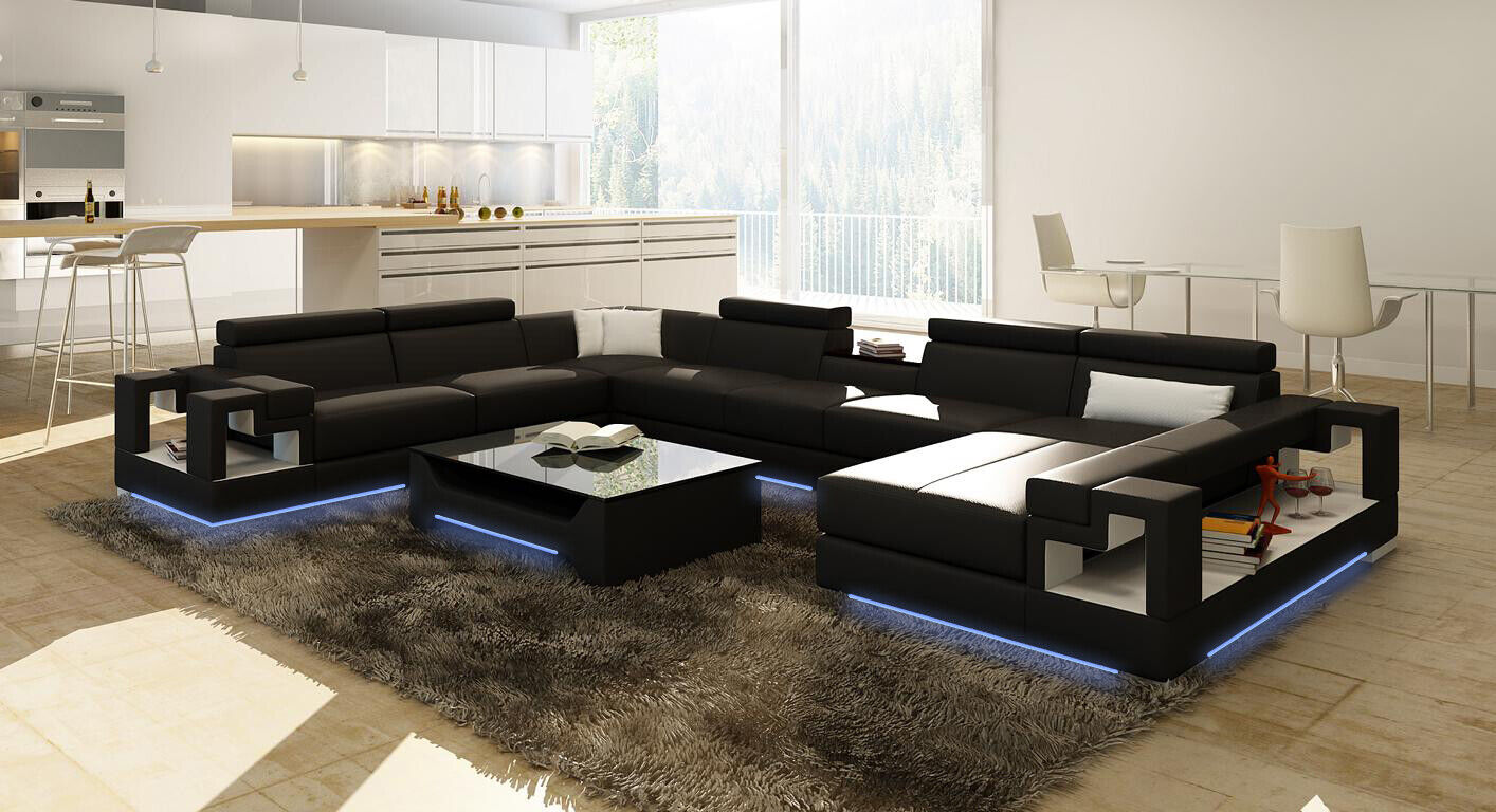 Ledercouch Couch Wunnlandschaft Eckcouch Eck Garnitur Design Modern Sofa 6138