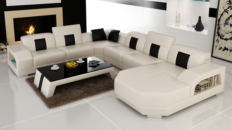 Ledersofa Canapé Wunnlandschaft Ecksofa Eck Garnitur Design Modern Canapé R7003 Nei